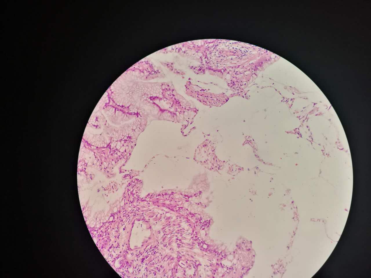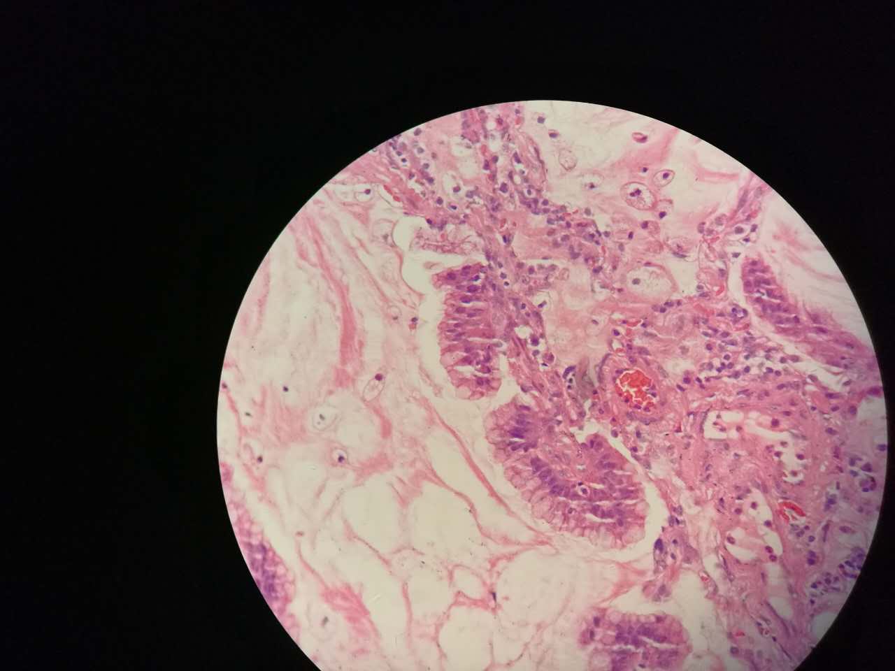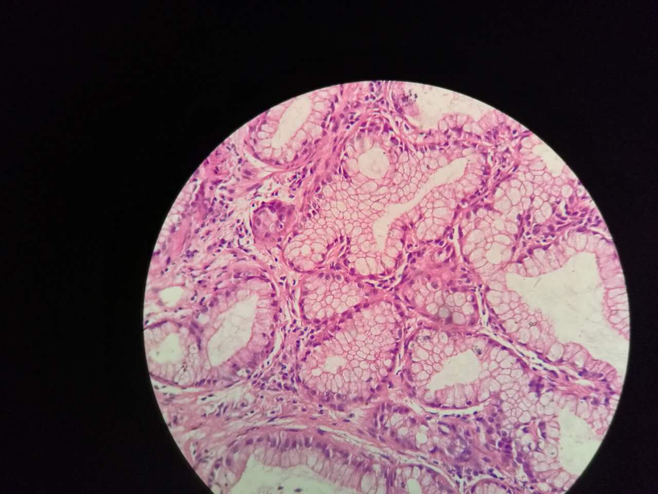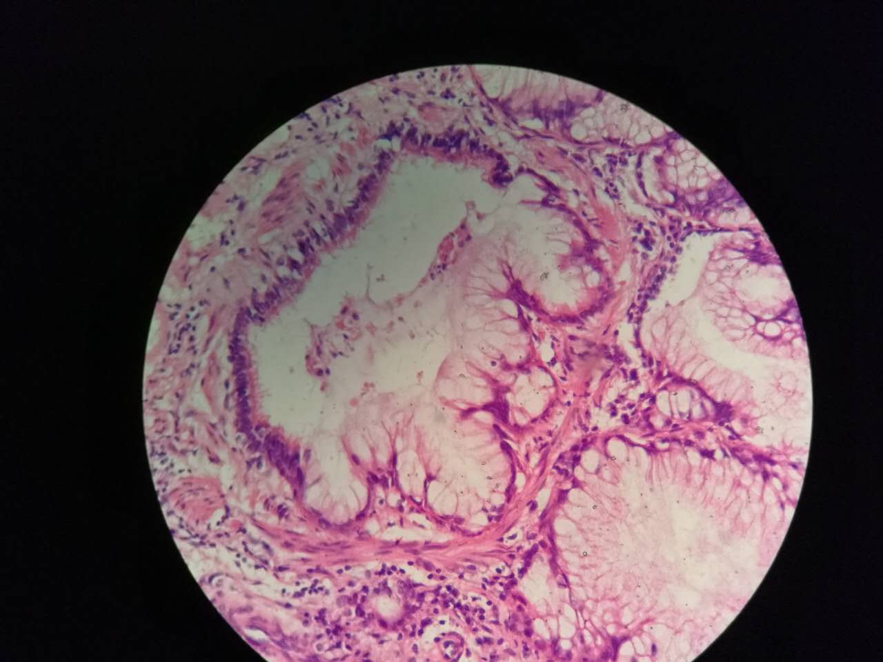 粘液型腺癌,细胞内粘液多,有点儿像支气管的粘液腺