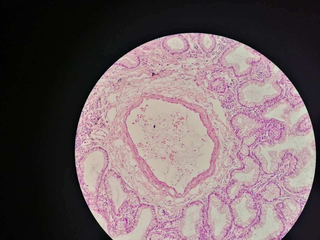 细胞内白颜色区是粘液,细胞外洋流样的也是粘液(湖)