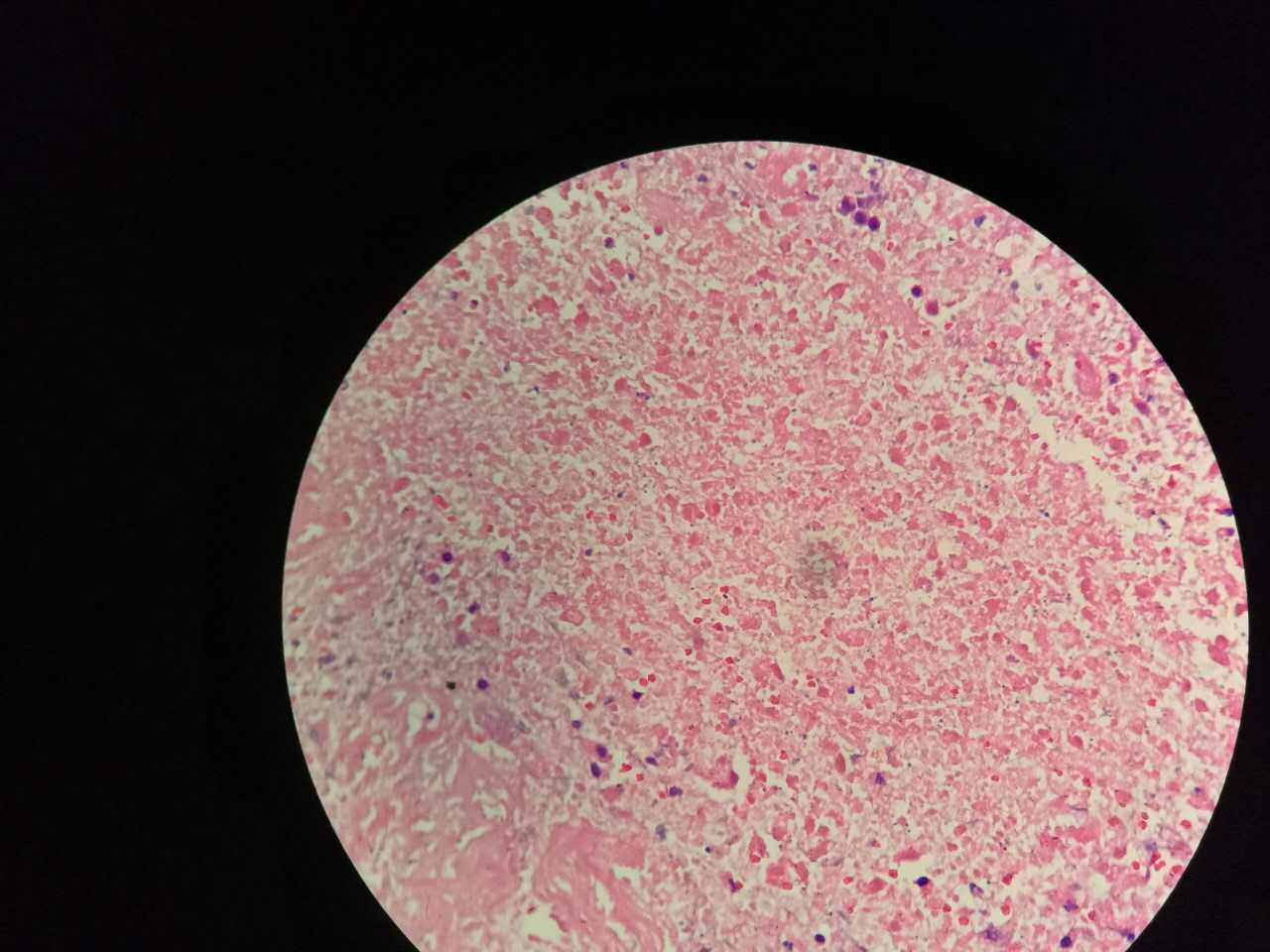 较大的粉红区都是坏死,可以看出坏死是因为巢团大,中央坏死