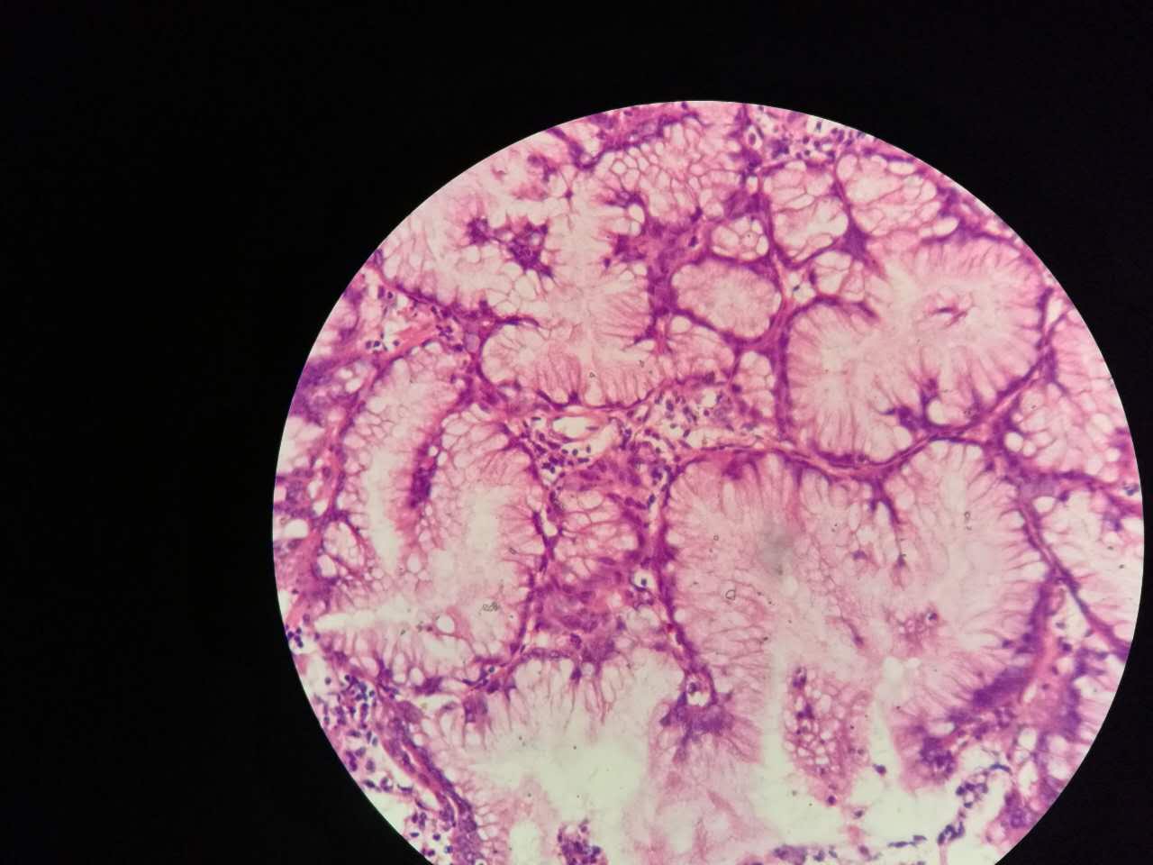 粘液型腺癌的肿瘤细胞排列整齐,核位于基底,细胞呈柱状。