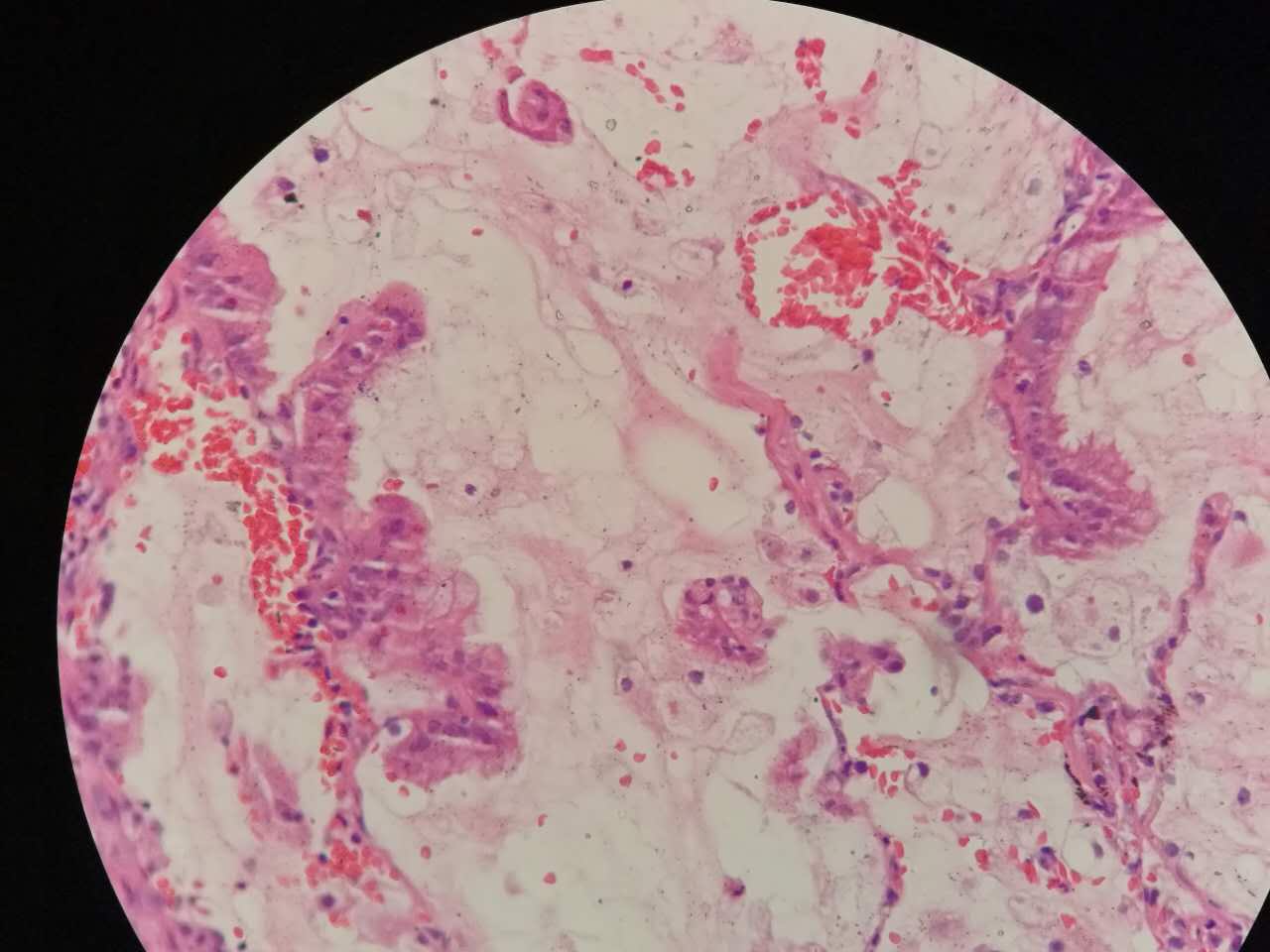早期粘液漂散也是近距离的,右侧肺泡里干净,没粘液,粘液产量有限,并且互相有黏连牵制。