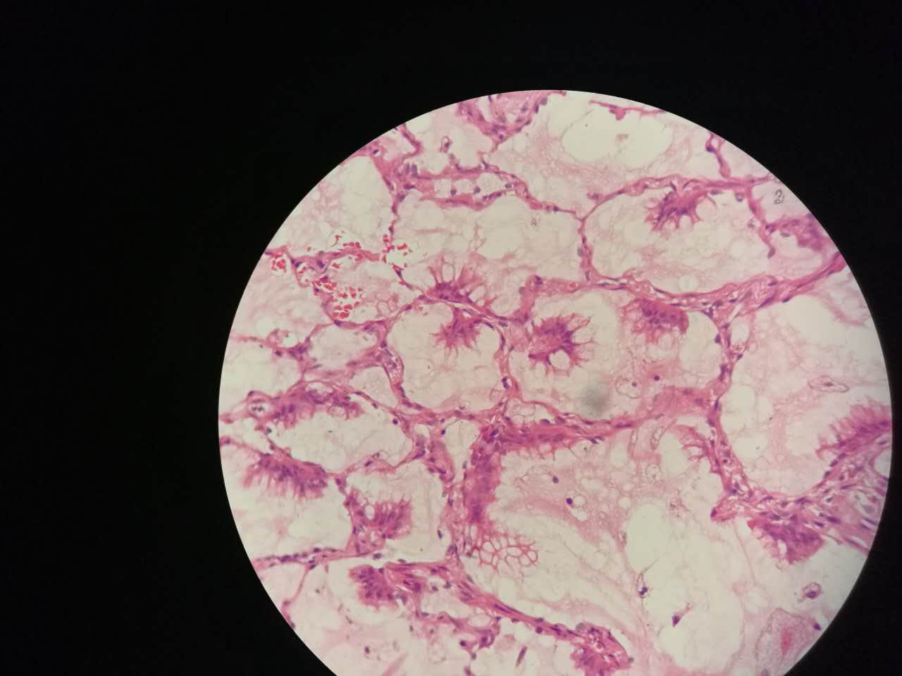 与实体型腺癌有时难区分,做免疫组化鉴别